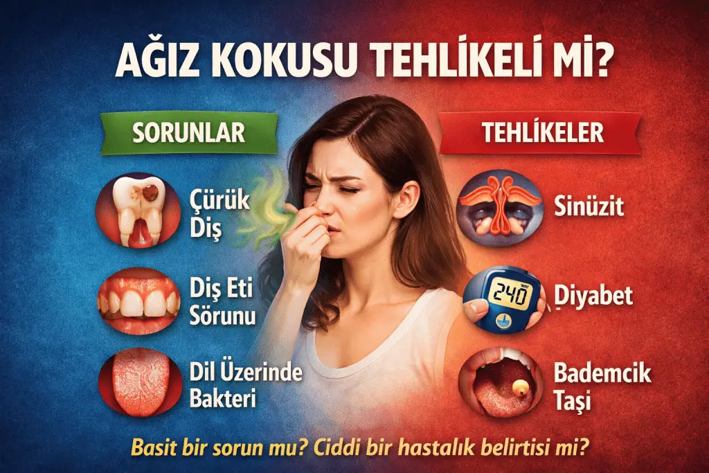 Ağız kokusu, tıbbi adıyla halitozis, birçok kişinin yaşadığı ancak çoğu zaman göz ardı ettiği bir problemdir. Peki ağız kokusu gerçekten tehlikeli mi? Yoksa sadece günlük bir hijyen sorunu mu? Bu yazıda ağız kokusunun nedenlerini, hangi durumlarda riskli olduğunu ve etkili çözüm yollarını detaylı şekilde ele alıyoruz. Ağız Kokusu Nedir? Ağız kokusu, ağızdan gelen rahatsız edici […]