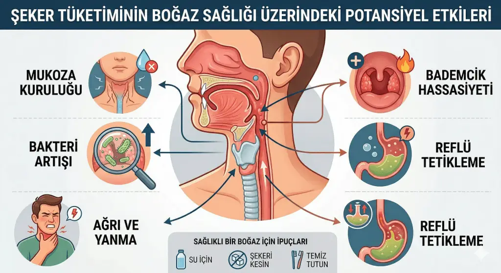Şeker Tüketiminin Boğaz Sağlığı Üzerindeki Potansiyel Etkileri Şeker, günlük beslenmemizin vazgeçilmez bir parçası olsa da, aşırı tüketimi vücudumuzun çeşitli sistemleri üzerinde olumsuz etkiler yaratabilir. Boğaz sağlığı da bu etkileşimlerden nasibini alabilen hassas bir alandır. Peki, şeker tüketimi boğazımıza gerçekten zarar verir mi ve bu etkileşimler hangi mekanizmalar üzerinden işler? Tanım Şekerin boğaza doğrudan bir “zehir” […]