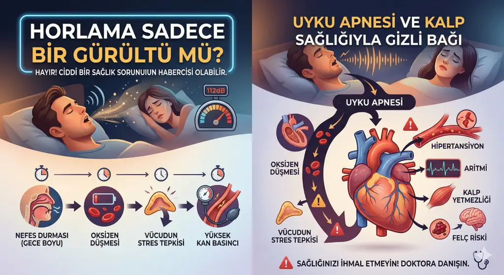 Horlama, birçok kişi için uykunun doğal bir parçası ya da eşlerini rahatsız eden sıradan bir durum gibi algılanabilir. Ancak sanılanın aksine, özellikle yüksek sesli ve düzensiz horlama, vücudumuzda çok daha ciddi bir sorunun, uyku apnesinin belirtisi olabilir. Ve bu durum, kalp sağlığımız üzerinde göz ardı edilmemesi gereken gizli bir risk taşır. Tanım Horlama, uyku sırasında […]