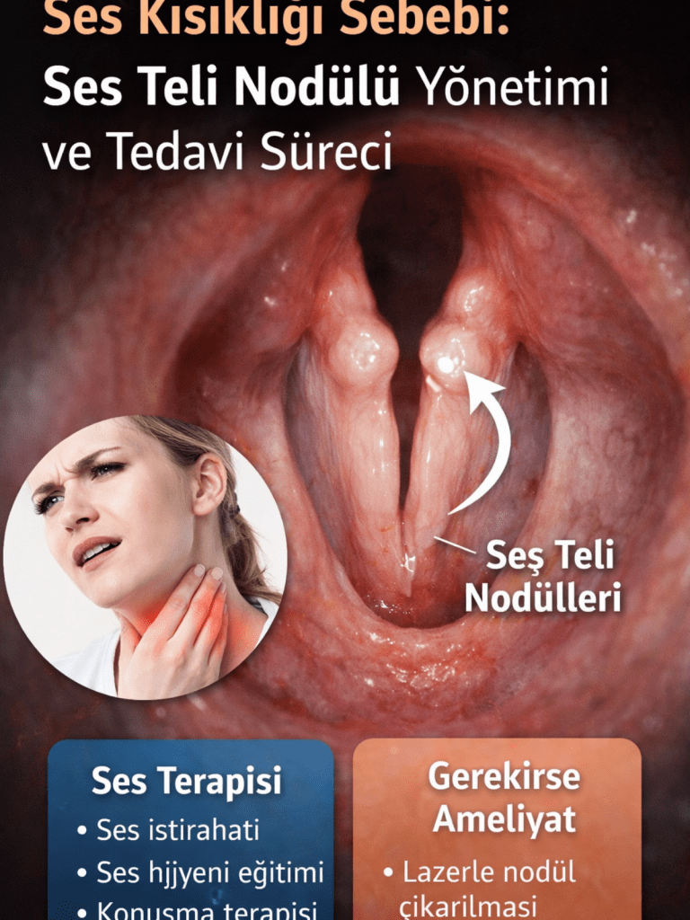 Sesimiz, günlük iletişimimizin ve kimliğimizin ayrılmaz bir parçasıdır. Ancak ses tellerimizde oluşan bazı rahatsızlıklar, yaşam kalitemizi önemli ölçüde etkileyebilir. Bu rahatsızlıklardan biri de ses teli nodülleridir. Tanım Ses teli nodülleri, ses tellerinin orta kısmında, genellikle karşılıklı olarak gelişen iyi huylu, küçük, nasırımsı oluşumlardır. Halk arasında “şarkıcı nodülü” veya “öğretmen nodülü” olarak da bilinen bu durum, […]